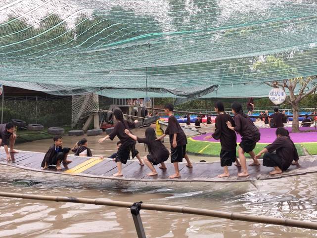 Rèn luyện thể chất: Thử thách bản thân qua các trò chơi vận động như vượt chướng ngại vật (cầu khỉ, cầu dây), trượt cỏ, trượt phao và thi bắt cá lóc.