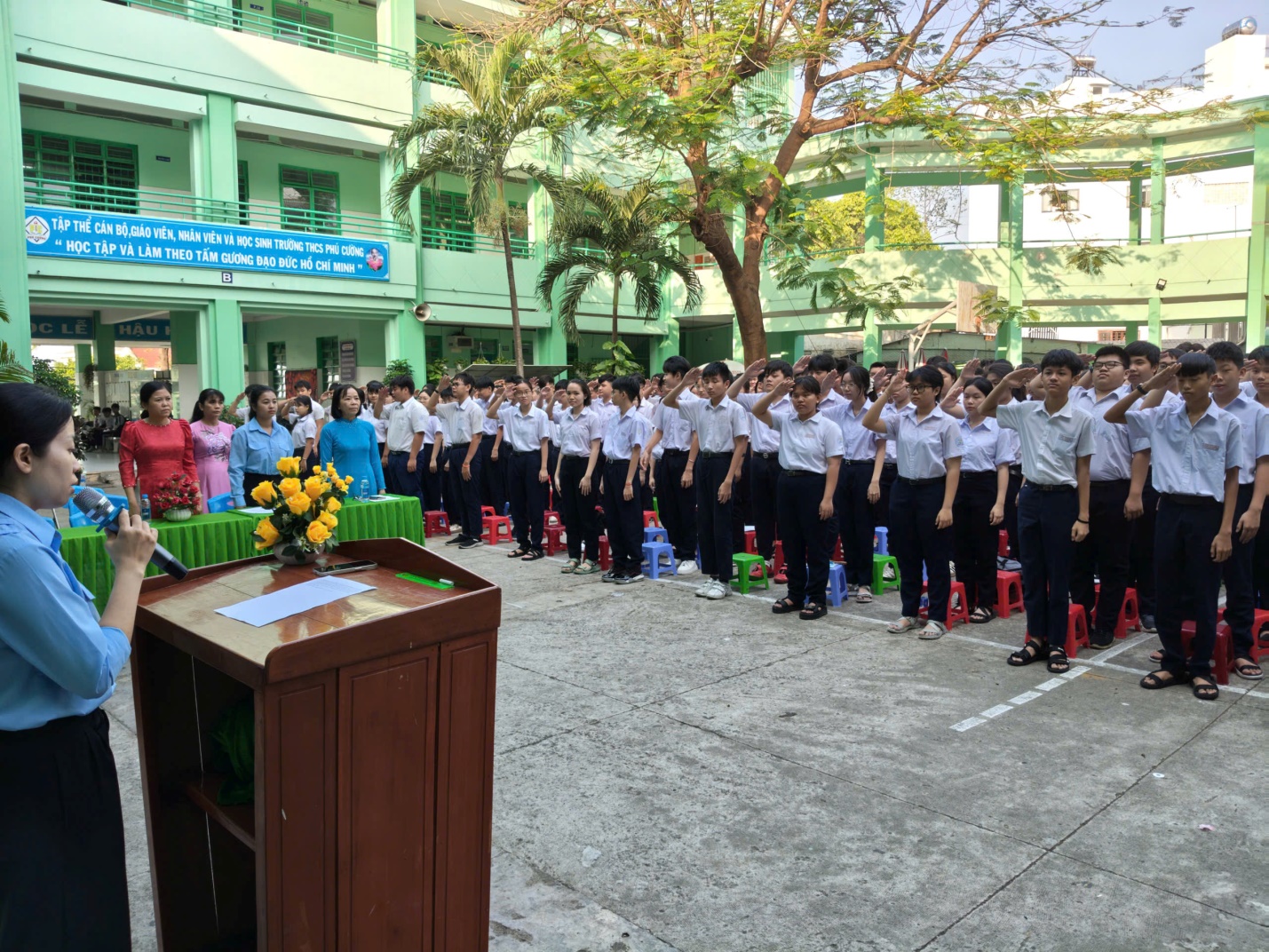 Phát biểu tại buổi lễ, đại diện Liên đội đã ghi nhận và biểu dương những đóng góp tích cực của các em trong suốt thời gian qua. Từ những phong trào "Kế hoạch nhỏ", "Hoa điểm tốt" đến những thành tích cao trong học tập và các hội thi Nghi thức Đội, 306 đội viên khối 9 đã góp phần không nhỏ làm nên bảng vàng thành tích của trường THCS Phú Cường.