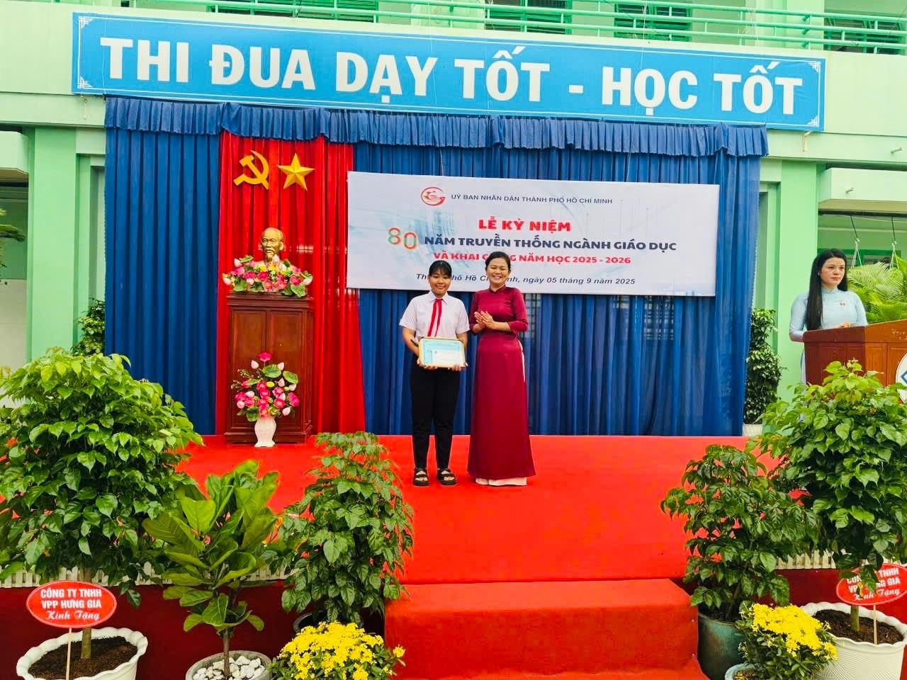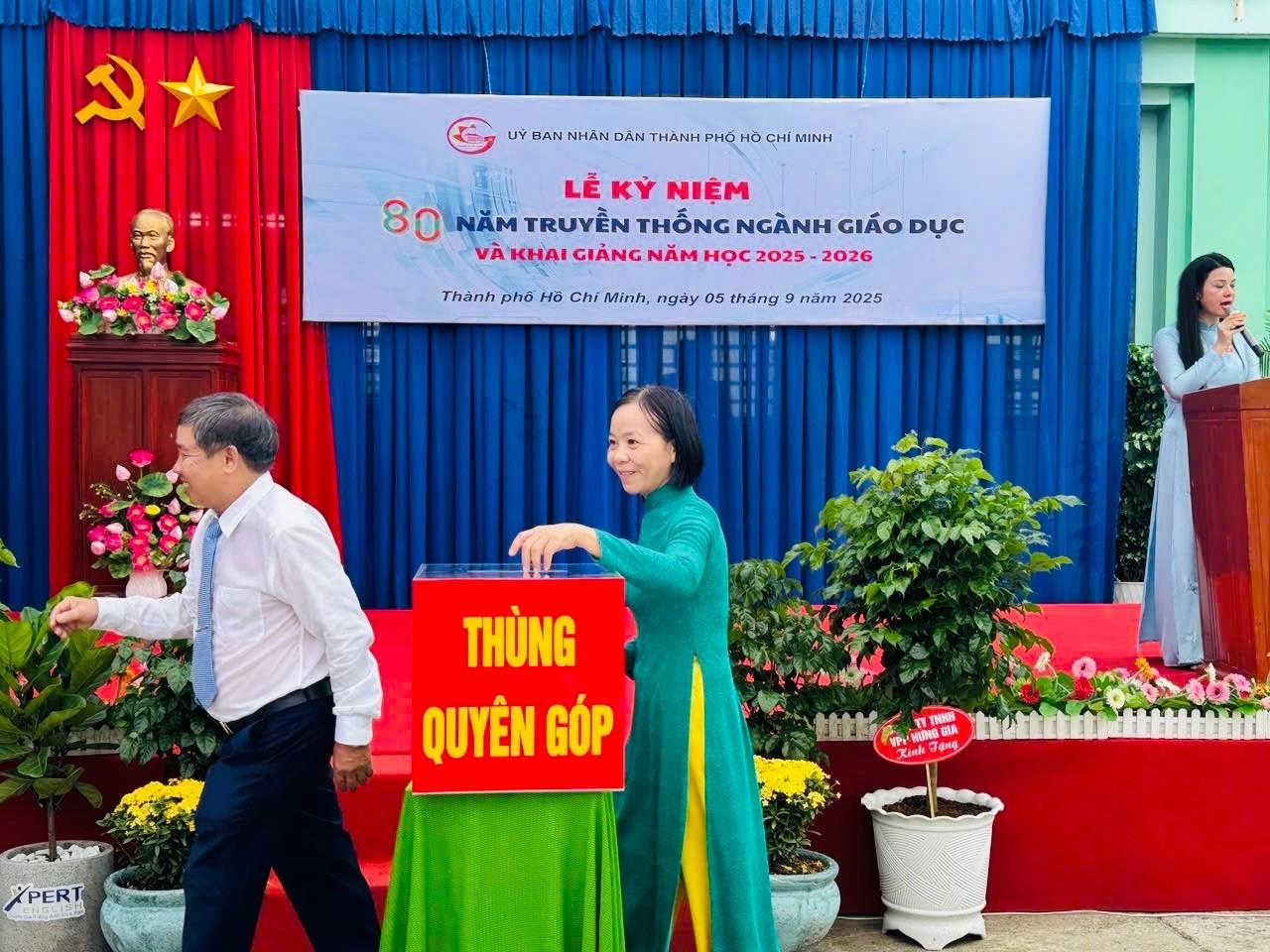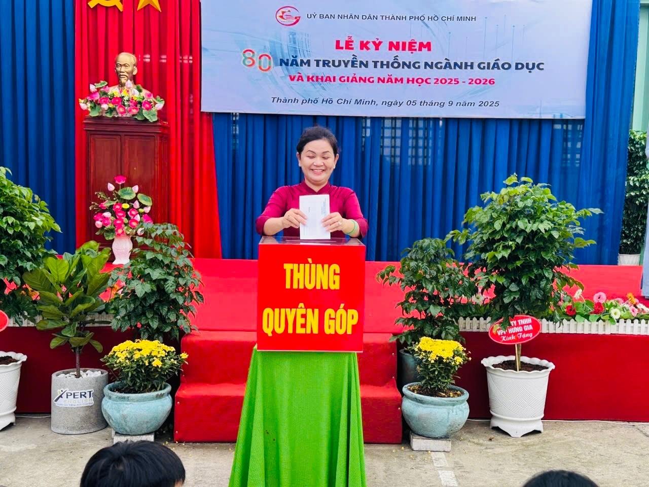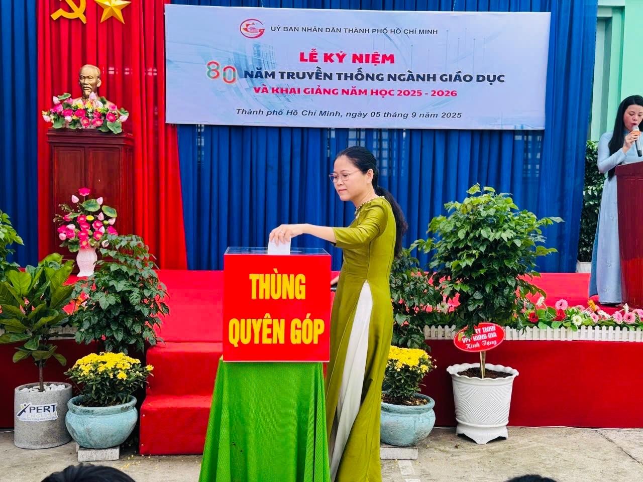 Song song đó, nhà trường cùng các mạnh thường quân đã trao những suất học bổng khuyến học cho học sinh nghèo hiếu học, tiếp thêm động lực để các em vượt khó vươn lên, viết tiếp ước mơ trên con đường học tập. Đặc biệt, buổi lễ còn phát động quyên góp ủng hộ đồng bào vùng lũ bị ảnh hưởng bởi cơn bão số 4 và 5, lan tỏa tinh thần “tương thân tương ái”, góp phần giáo dục học sinh về trách nhiệm với cộng đồng.