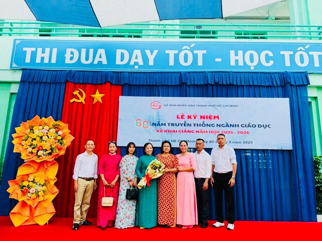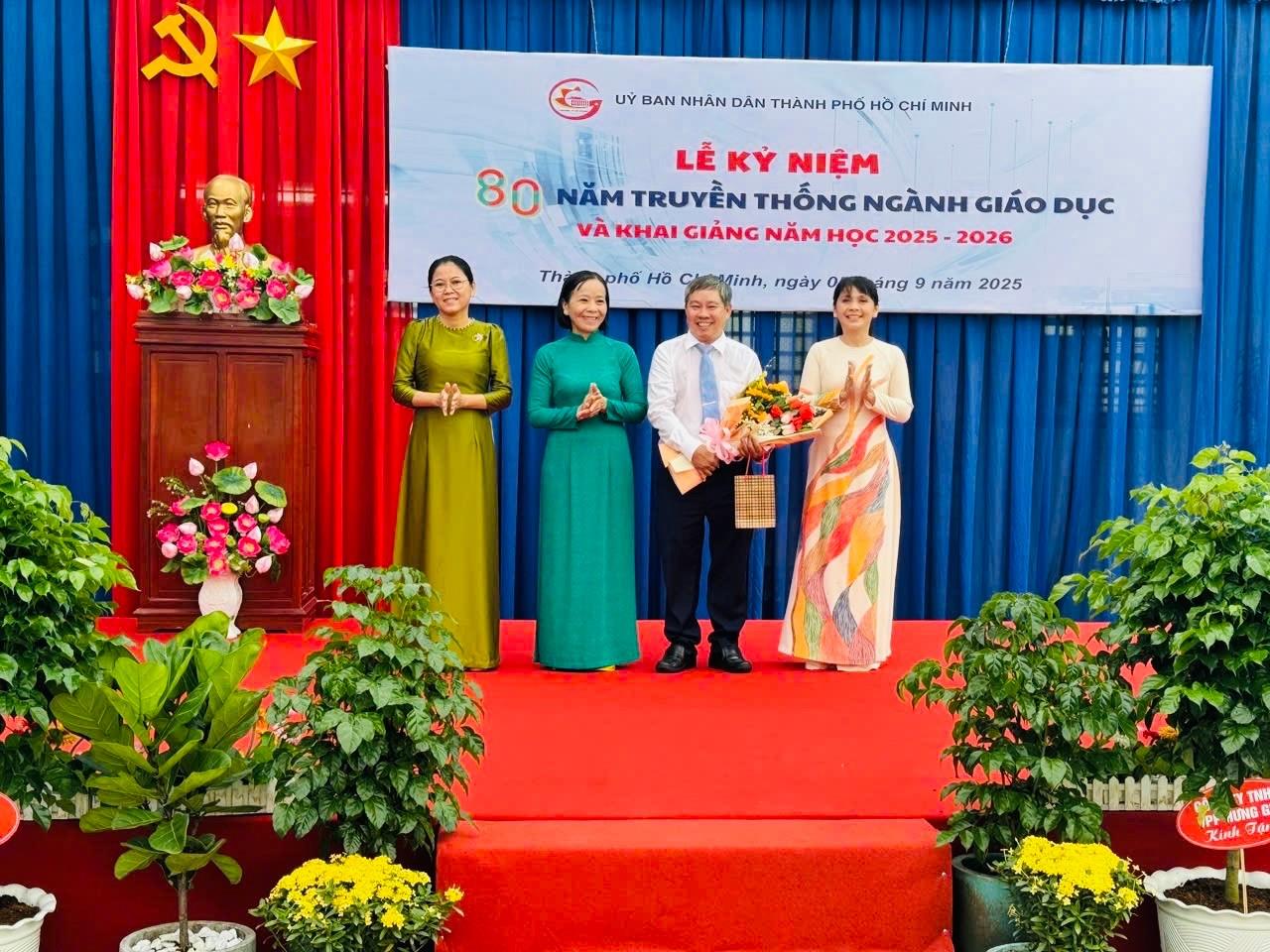 Trong phần lễ, thầy cô và học sinh đã cùng nhau ôn lại truyền thống, tri ân sự cống hiến to lớn của thầy Lê Trung Nghĩa – nguyên Bí thư chi bộ, Hiệu trưởng nhà trường, người đã dành trọn tâm huyết cho sự nghiệp trồng người suốt 38 năm qua. Những bó hoa, món quà tri ân chính là tình cảm chân thành mà tập thể gửi đến thầy trong ngày khai trường đầy ý nghĩa.