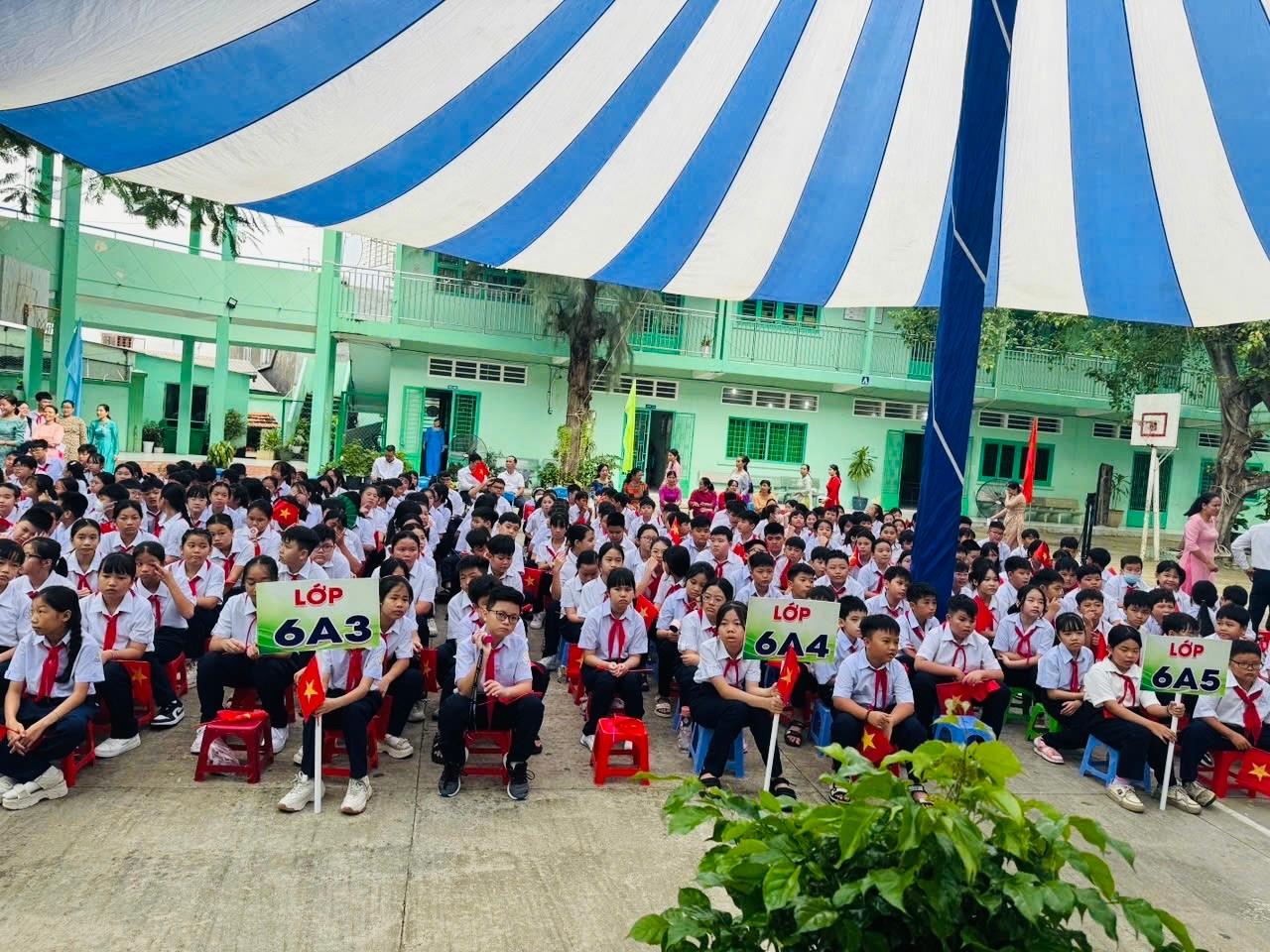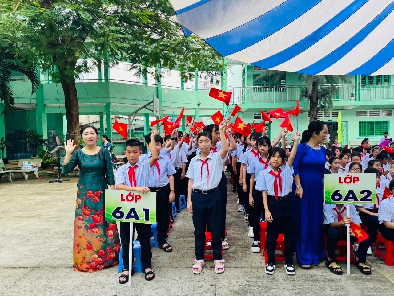 Mở đầu buổi lễ là phần chào đón học sinh khối 6 – những gương mặt mới đầy bỡ ngỡ nhưng cũng chan chứa niềm tin và khát vọng dưới mái trường Phú Cường thân yêu. Các em chính là thế hệ tiếp nối, góp thêm sắc màu tươi mới cho vườn hoa tri thức của nhà trường.