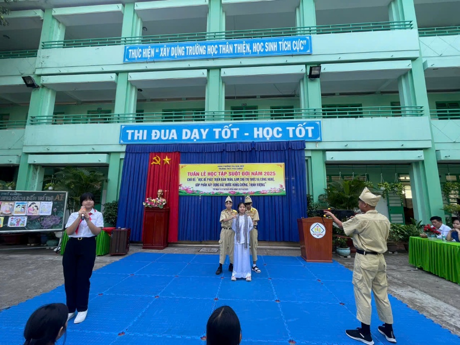 Phát biểu tại buổi lễ, Cô Phạm Hoa Hòa – Bí thư Chi bộ, Hiệu trưởng nhà trường đã nhấn mạnh: “Học tập suốt đời không chỉ là nhiệm vụ, mà là quyền lợi, là con đường để mỗi người phát triển bản thân và đóng góp cho xã hội trong thời đại số.” Thông điệp ấy càng được lan tỏa qua những phần công diễn xuất sắc từ các hội thi “Từ trang sách đến AI” – nơi tri thức truyền thống gặp gỡ công nghệ hiện đại.