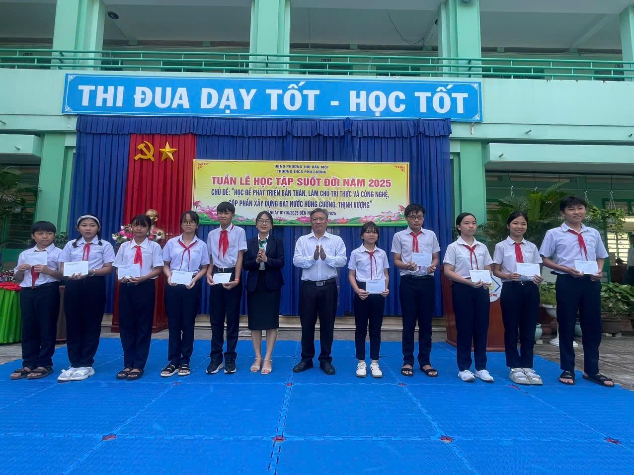Đặc biệt, Ngân hàng BIDV – Chi nhánh Bình Dương đã trao tặng 10 triệu đồng học bổng “Tiếp sức đến trường” dành cho học sinh có hoàn cảnh khó khăn. Nhà trường xin gửi lời cảm ơn trân trọng đến bà Bùi Thị Thuỳ Dung cùng tập thể BIDV Bình Dương đã đồng hành cùng sự nghiệp giáo dục, lan tỏa tinh thần sẻ chia đầy nhân văn.