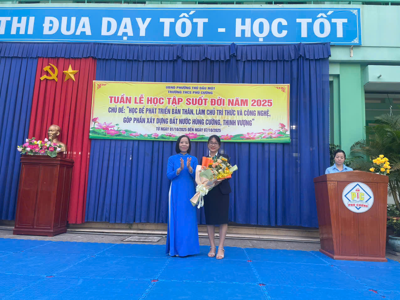 Sáng ngày 06/10/2025, trong không khí rộn ràng của năm học mới, trường THCS Phú Cường đã long trọng tổ chức Lễ phát động “Tuần lễ hưởng ứng học tập suốt đời” năm 2025. Đây là hoạt động thường niên có ý nghĩa sâu sắc, góp phần lan tỏa tinh thần học tập liên tục – học trong nhà trường, học ở sách vở, học từ công nghệ và học trong cuộc sống.