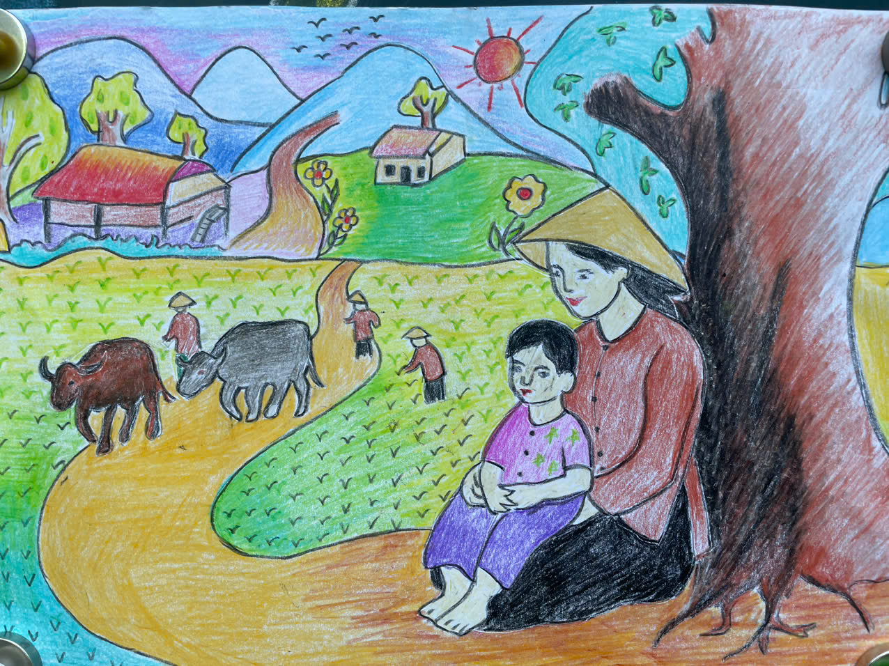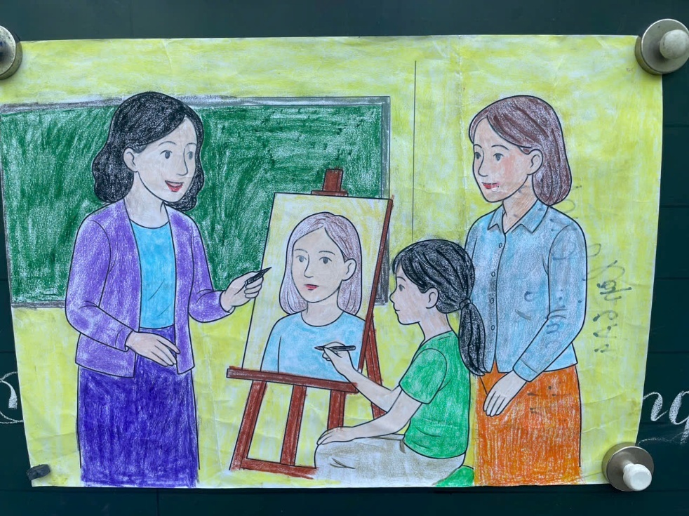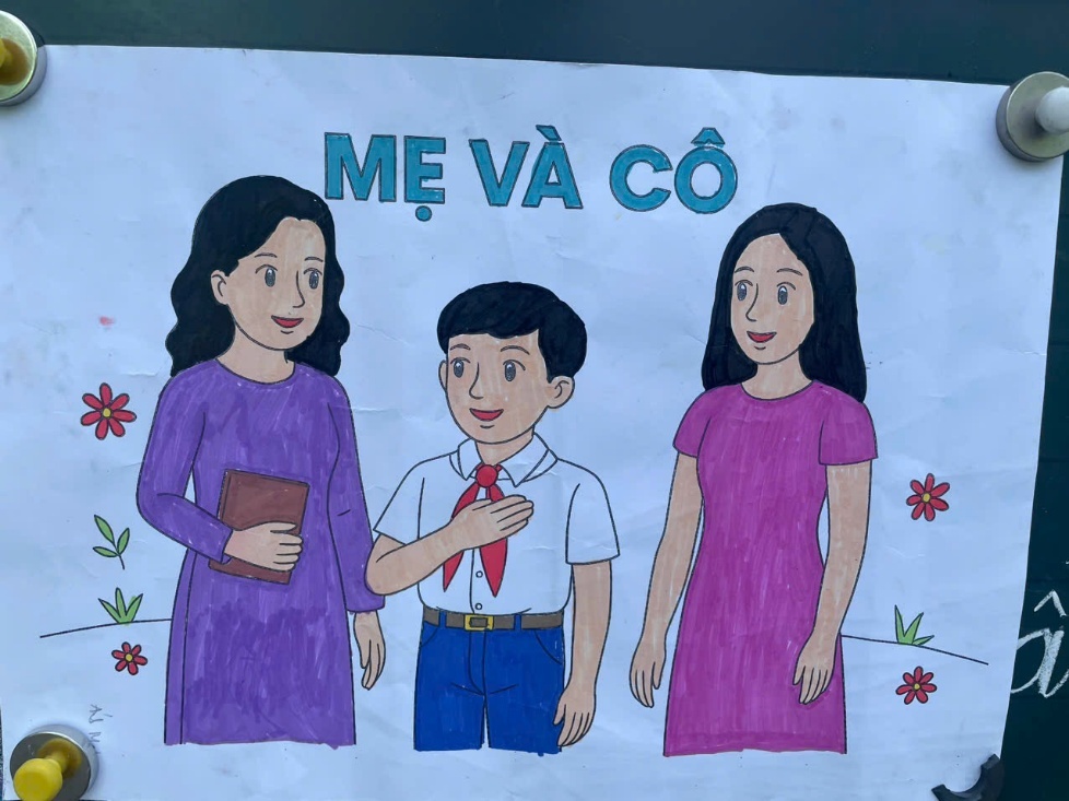 Phần trao thưởng cho học sinh đạt giải cuộc thi sử dụng công cụ Al sáng tác tranh với đề tài “Mẹ và cô” của HS khối 6.