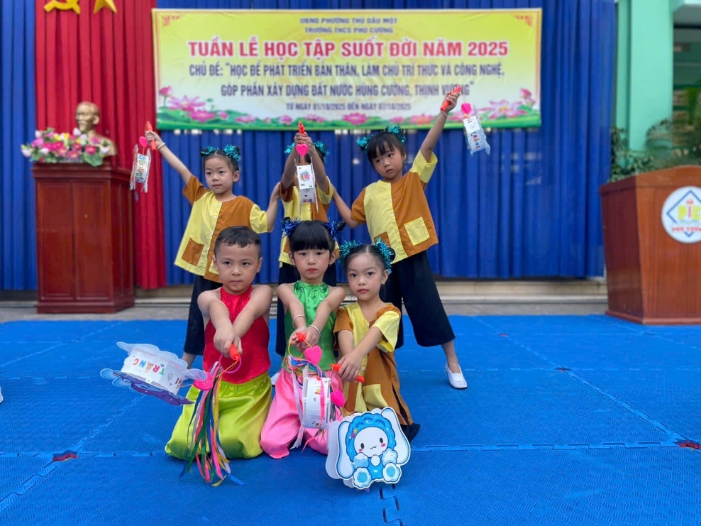Buổi lễ hân hạnh đón tiếp sự hiện diện của ông Võ Hoàn Vũ – UVTV, Phó Chủ tịch UBND Phường Thủ Dầu Một, cùng đại diện các ban ngành đoàn thể, Hội Cha mẹ học sinh, các đơn vị trường bạn, đặc biệt là các cô giáo và các bé trường Mầm non Măng Non – những “thiên thần nhỏ” đã mang đến tiết mục “Liên khúc Vui Trung Thu” vô cùng dễ thương, tạo nên bầu không khí ấm áp và tràn đầy yêu thương. Nhà trường trân trọng gửi lời cảm ơn đến các cô và các bé – những khách mời nhỏ tuổi nhưng mang đến niềm vui thật lớn!