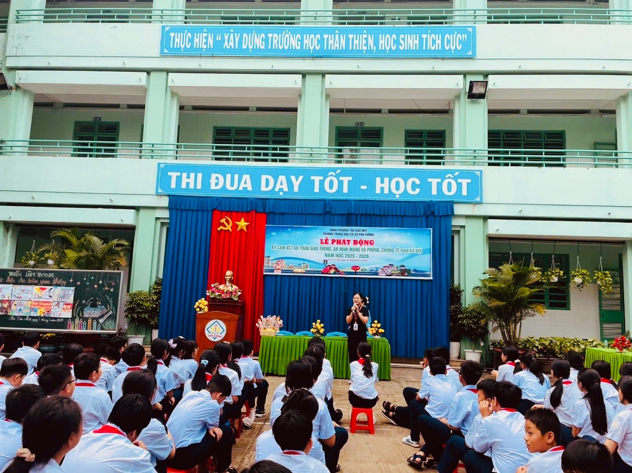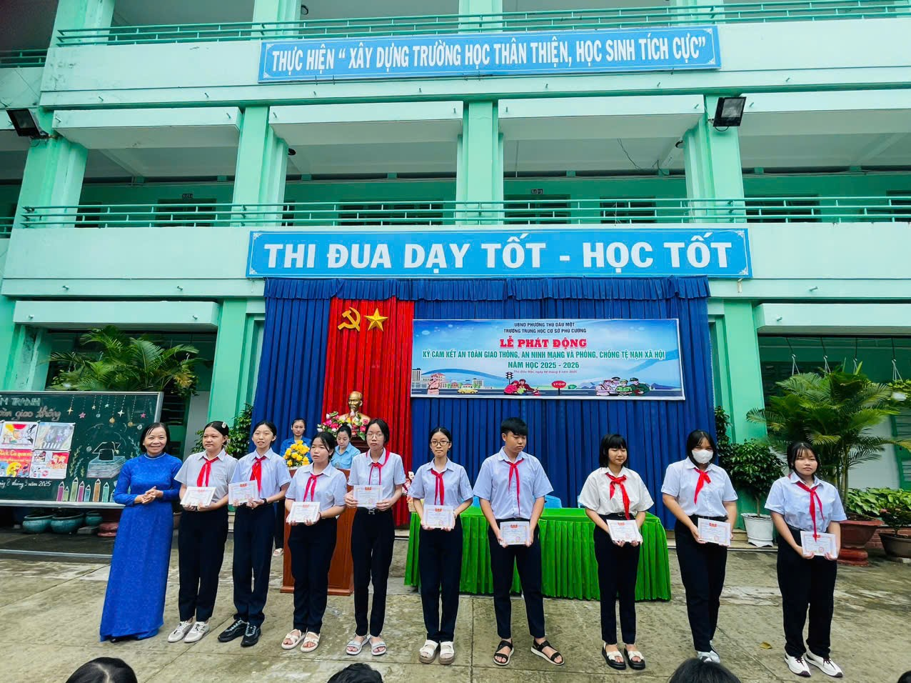 Sáng ngày 08/9/2025, tại sân trường, Trường THCS Phú Cường đã tổ chức Lễ phát động học sinh chấp hành pháp luật về phòng, chống ma túy và hưởng ứng Tháng cao điểm An toàn giao thông. Đây là hoạt động thường niên, có ý nghĩa quan trọng trong việc nâng cao nhận thức, ý thức trách nhiệm của học sinh đối với xã hội và cộng đồng.