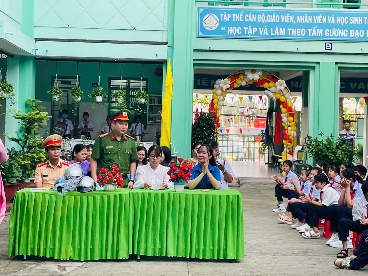 Ban giám hiệu nhà trường, Ban đại diện Cha mẹ học sinh và Công an phường đã cùng ký Bản cam kết An toàn giao thông