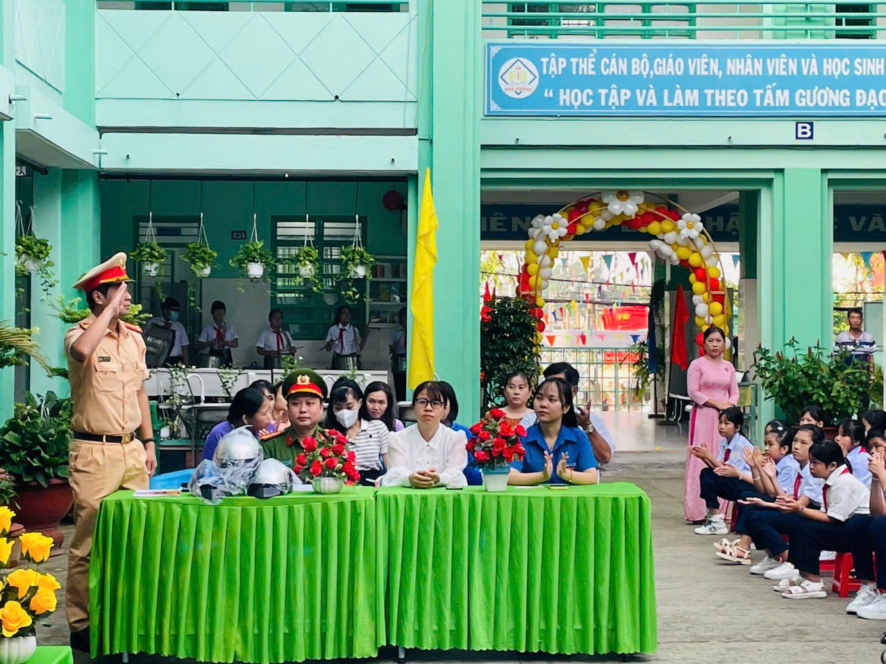 Buổi lễ vinh dự đón tiếp sự hiện diện của các đại biểu: Đồng chí Nguyễn Hữu Thái – Phó Trưởng Công an phường Thủ Dầu Một. Đồng chí Phạm Lê Vinh – Cán bộ Phòng Cảnh sát Giao thông, thành phố Hồ Chí Minh. Bà Huỳnh Phạm Thanh Thảo – Phó Bí thư Đoàn phường Thủ Dầu Một. Bà Hoàng Thị Lụa – Phó phòng Văn hóa – Xã hội. Ông Đào Thanh Trung – Đại diện Ban Cha mẹ học sinh. Về phía nhà trường có: Cô Phạm Hoa Hòa – Bí thư Chi bộ, Hiệu trưởng. Cô Nguyễn Thị Dung – Phó Bí thư Chi bộ, Phó Hiệu trưởng. Cùng toàn thể giáo viên chủ nhiệm, giáo viên bộ môn và học sinh khối 6, 7, 8, 9.